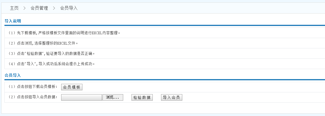 會員模板------>錄入數(shù)據(jù)------>點擊瀏覽------>檢驗數(shù)據(jù)------>導(dǎo)入會員------>導(dǎo)入成功