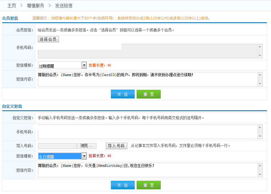 會員短信:給會員發(fā)送一條或者多條短信。點(diǎn)擊‘選擇會員’按鈕可以選擇一個(gè)或者多個(gè)會員。